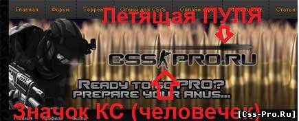 | Итак, как обещал, запускаю конкурс на лучшею "шапку" для сайта! Шапка состоит с двух частей: 1. Фон. В данном случае это патроны: Расширение 305х200, но главное в нем высота, так как контуры должны совпадать и создавать полноценный рисунок. Пример: 2. Второй рисунок, это "рисунок с прозрачным фоном", на котором должна быть надпись "css-pro.ru", его высота должна так же быть 200 пикселей, а вот ширина не больше 600, то есть нужно работать в режиме размера 1-600х200. Сейчас стоит картинка размером 558х200:  ps. Вот из чего состоит фирменый логотип Css-Pro.Ru  Ясно, что тематикой шапки должен быть Counter Strike и обязательно должна присутствовать надпись css-pro.ru Срок проведения конкурса: с 18.04.2012 по 15.05.2012. И самое главное - призы. За1-е место автор лучшей шапки (16 мая, будет объявлен победитель) получить админку на одном из трех наших серверов на выбор. Свои работы оставляем в данной теме! Вопросы задаем в новости о конкурсе Флуд в данной теме будет разценивается как нарушение, виновные будут наказаны!